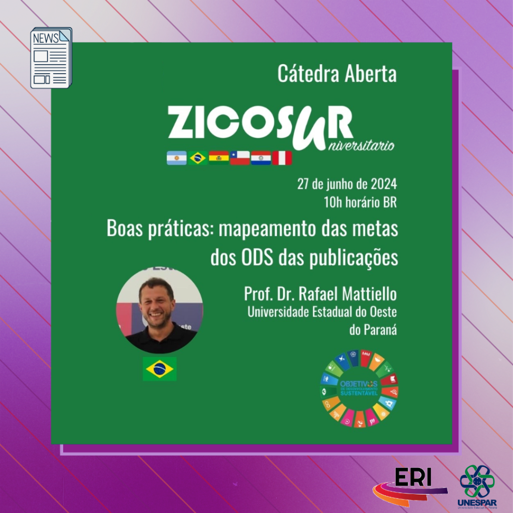 2º encontro da Cátedra Aberta da Rede Zicosur Universitário ocorrerá de forma online no dia 27/06