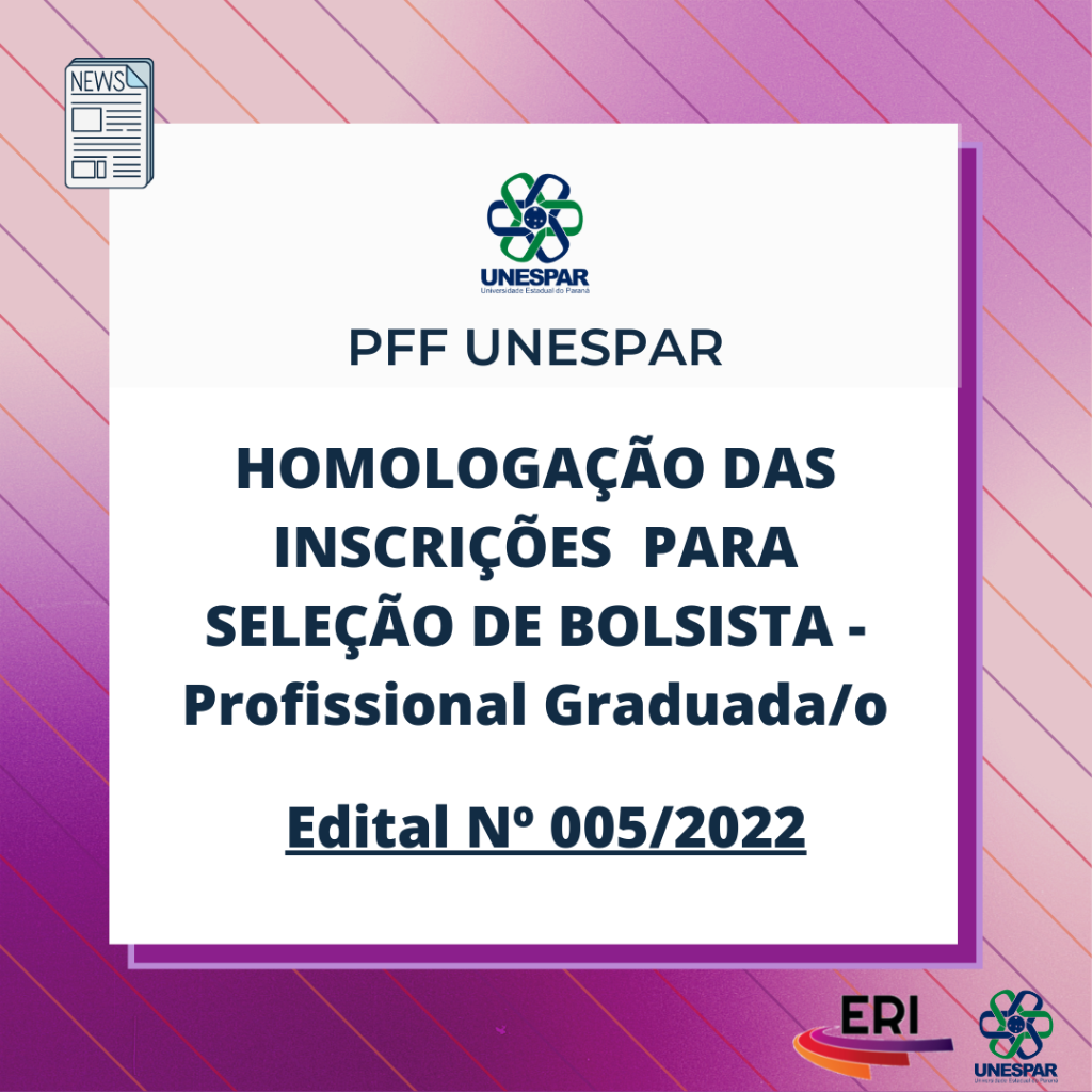 Edital 005/2022 PFF/UNESPAR - Homologação das inscrições para seleção de bolsista graduada/o