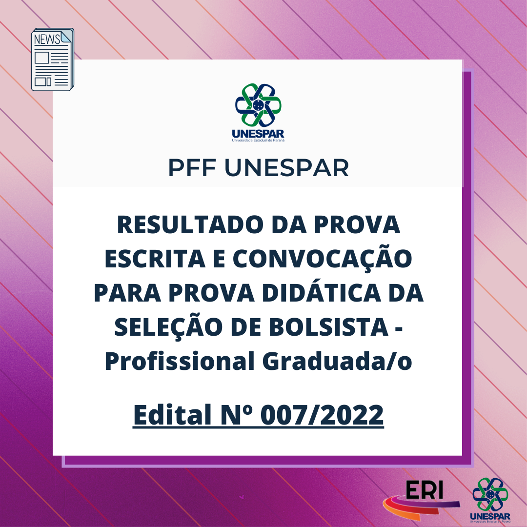 Edital 007/2022 PFF/UNESPAR - Resultado da Prova Escrita e Convocação para Prova Didática da seleção de bolsista graduada/o