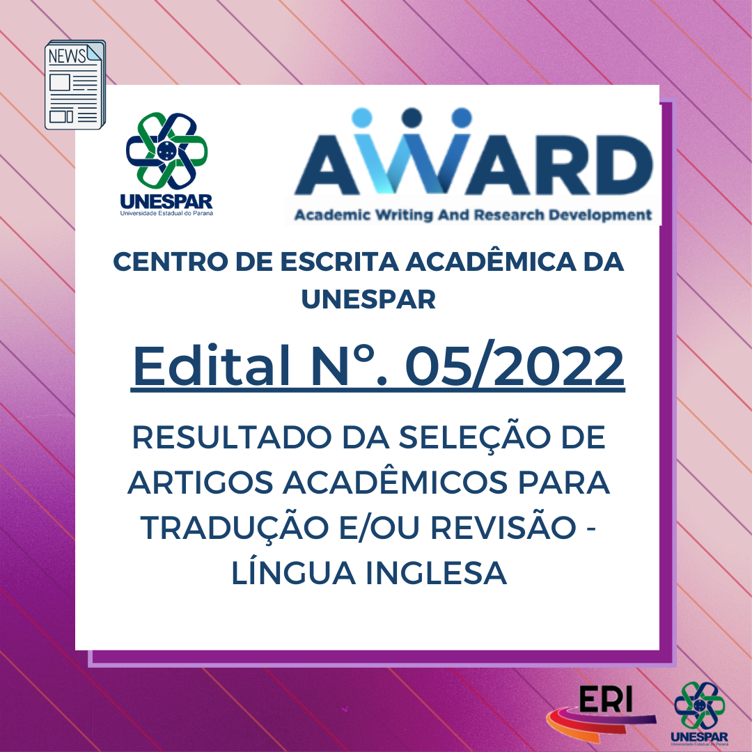 Edital 05/2022 - RESULTADO DA SELEÇÃO DE ARTIGOS ACADÊMICOS PARA TRADUÇÃO E/OU REVISÃO - LÍNGUA INGLESA