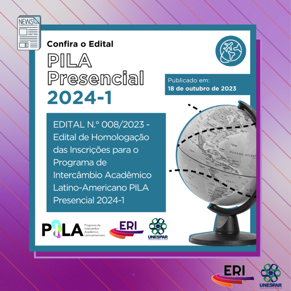 Edital Nº 008/2023 ERI/Unespar - Homologação das Inscrições para o Programa de Intercâmbio Acadêmico Latino-Americano PILA Presencial 2024-1