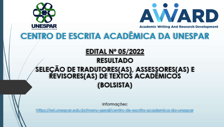 Edital Nº 05/2022 - AWARD - RESULTADO FINAL DA SELEÇÃO DE TRADUTORES(AS), ASSESSORES(AS) E REVISORES(AS) DE TEXTOS ACADÊMICOS