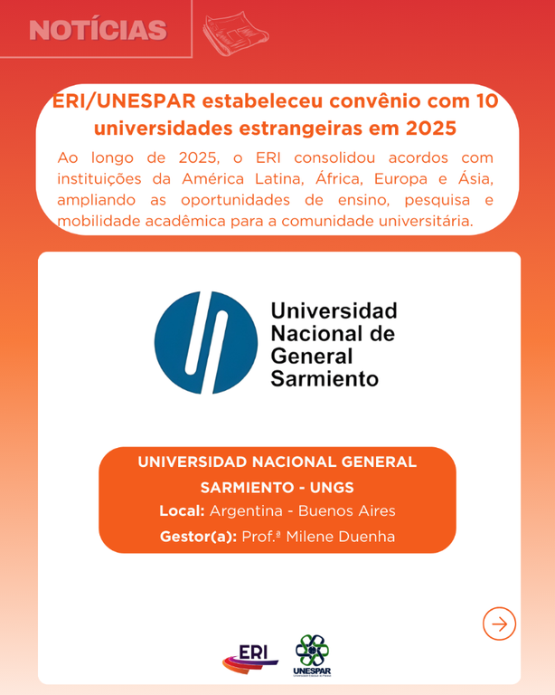 ERI/UNESPAR estabeleceu convênio com 10 universidades estrangeiras em 2025