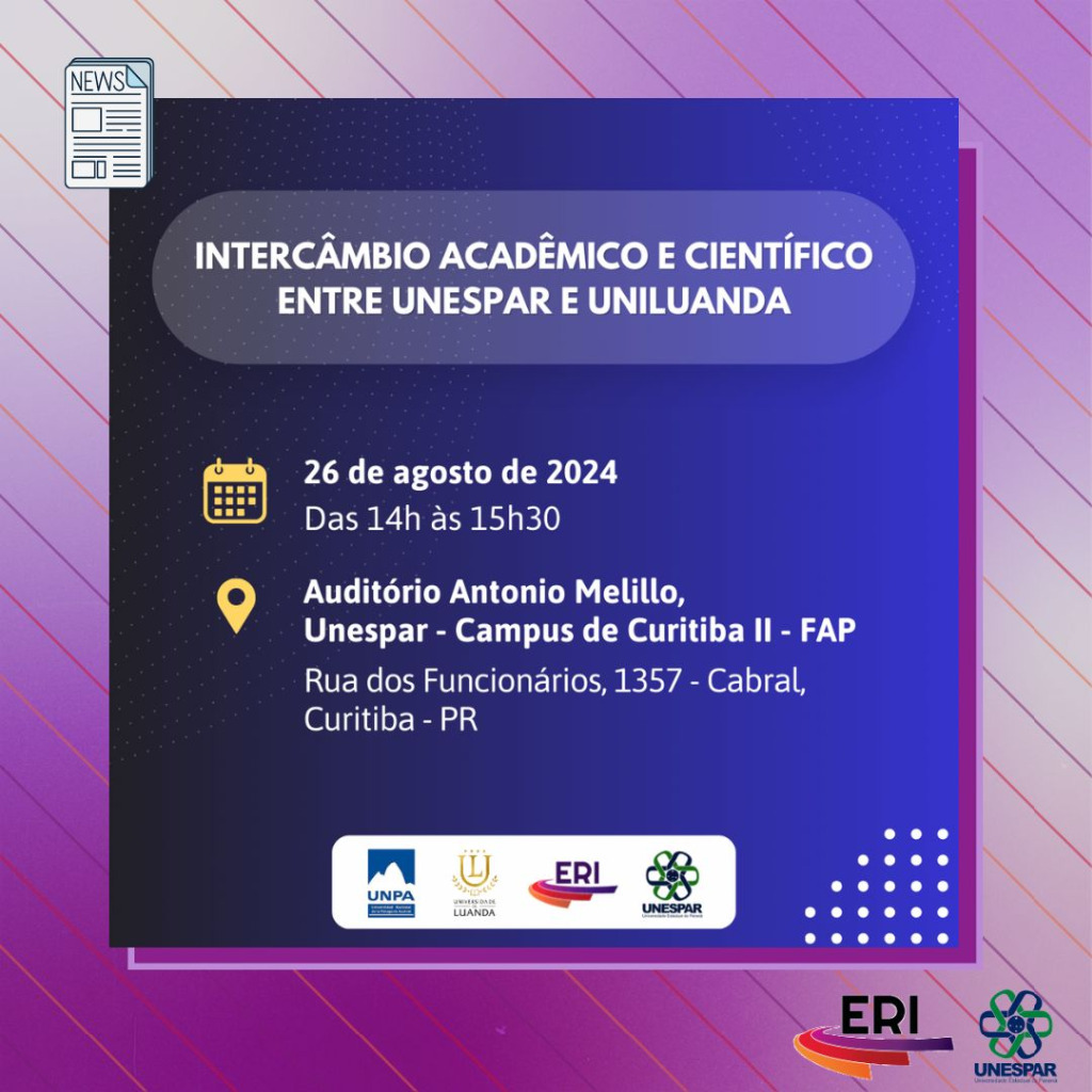 Evento “Intercâmbio Acadêmico e Científico entre a Unespar e a UniLuanda” ocorrerá no dia 26 de agosto em Curitiba