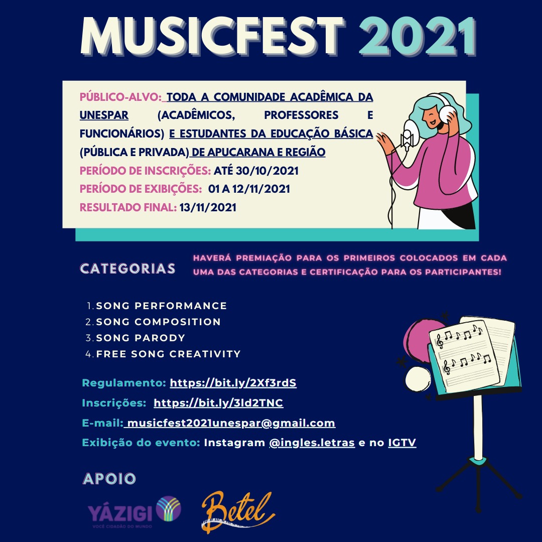 MUSICFEST 2021: PARTICIPAÇÃO ABERTA À COMUNIDADE ACADÊMICA DA UNESPAR COM CERTIFICAÇÃO