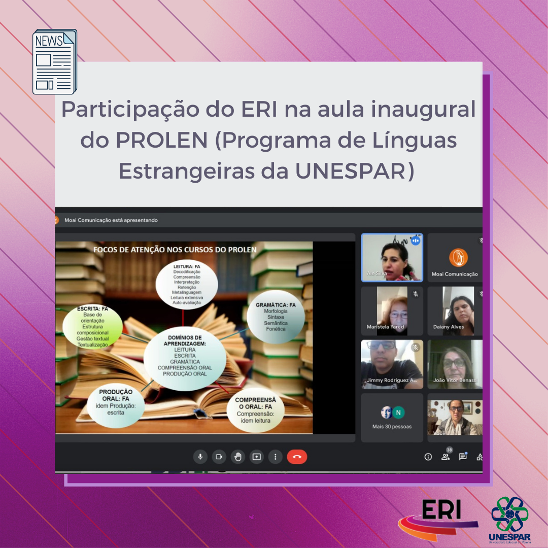 Participação do ERI na aula inaugural do PROLEN (Programa de Línguas Estrangeiras da UNESPAR)