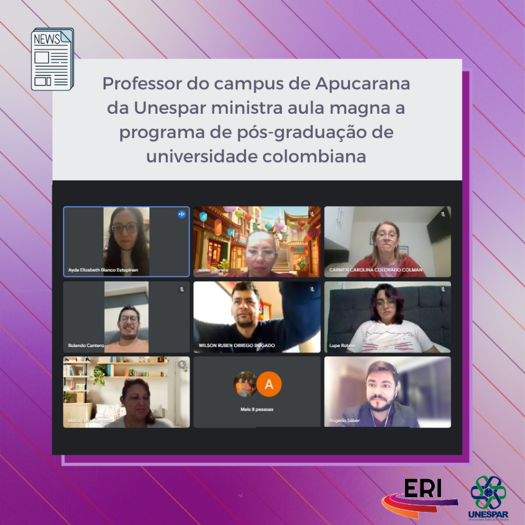 Professor do campus de Apucarana da Unespar ministra aula magna a programa de pós-graduação de universidade colombiana