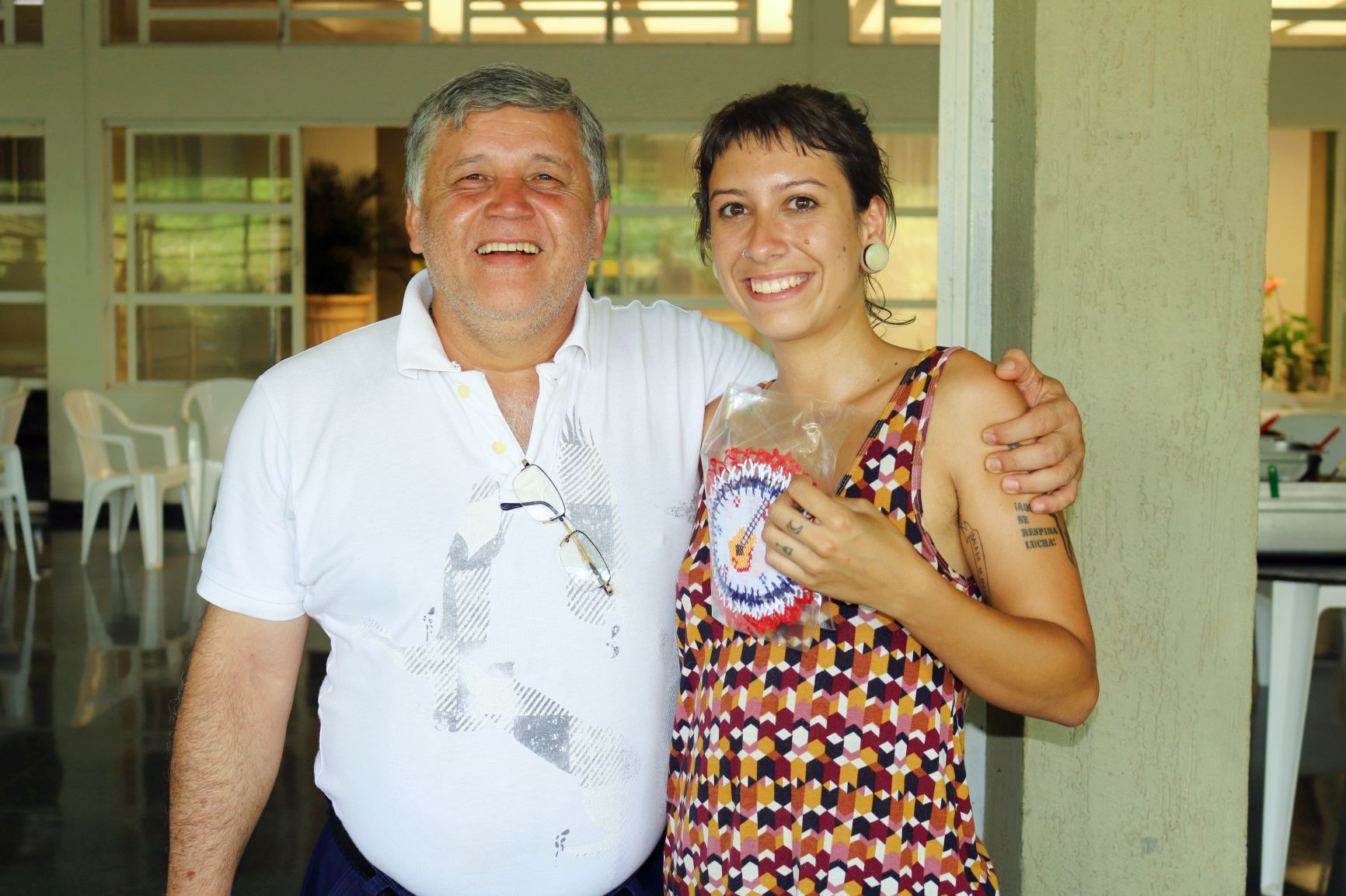 Oscar Gimenez da UNA presenteia a Assessora de Imprensa da Unespar Aline Oliveira