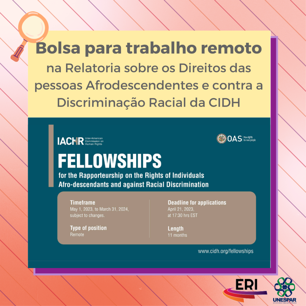 Bolsa para trabalho remoto sobre direitos da população afrodescendente
