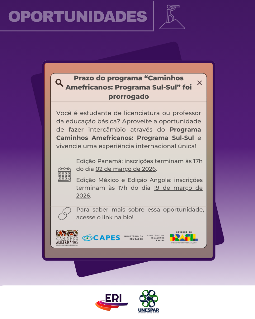 CAPES estende prazo de inscrição do programa "Caminhos Amefricanos: Programa Sul-Sul"