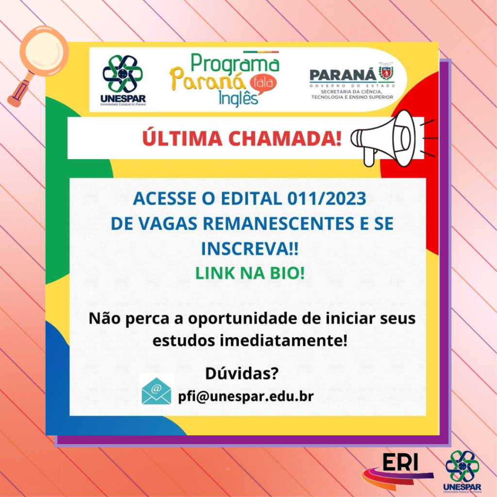 Chamada para as vagas remanescentes do Programa Paraná Fala Inglês (PFI) da Unespar (2).png