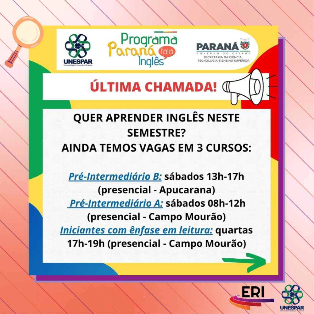 Chamada para as vagas remanescentes do Programa Paraná Fala Inglês (PFI) da Unespar