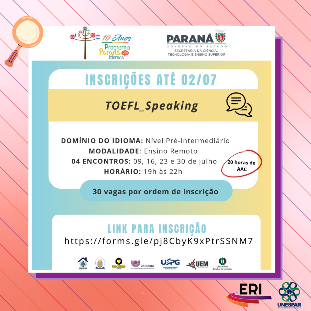 Cursos em modalidade remota ofertados pelo Programa Paraná Fala Inglês da UEL com inscrições abertas até o dia 02/07
