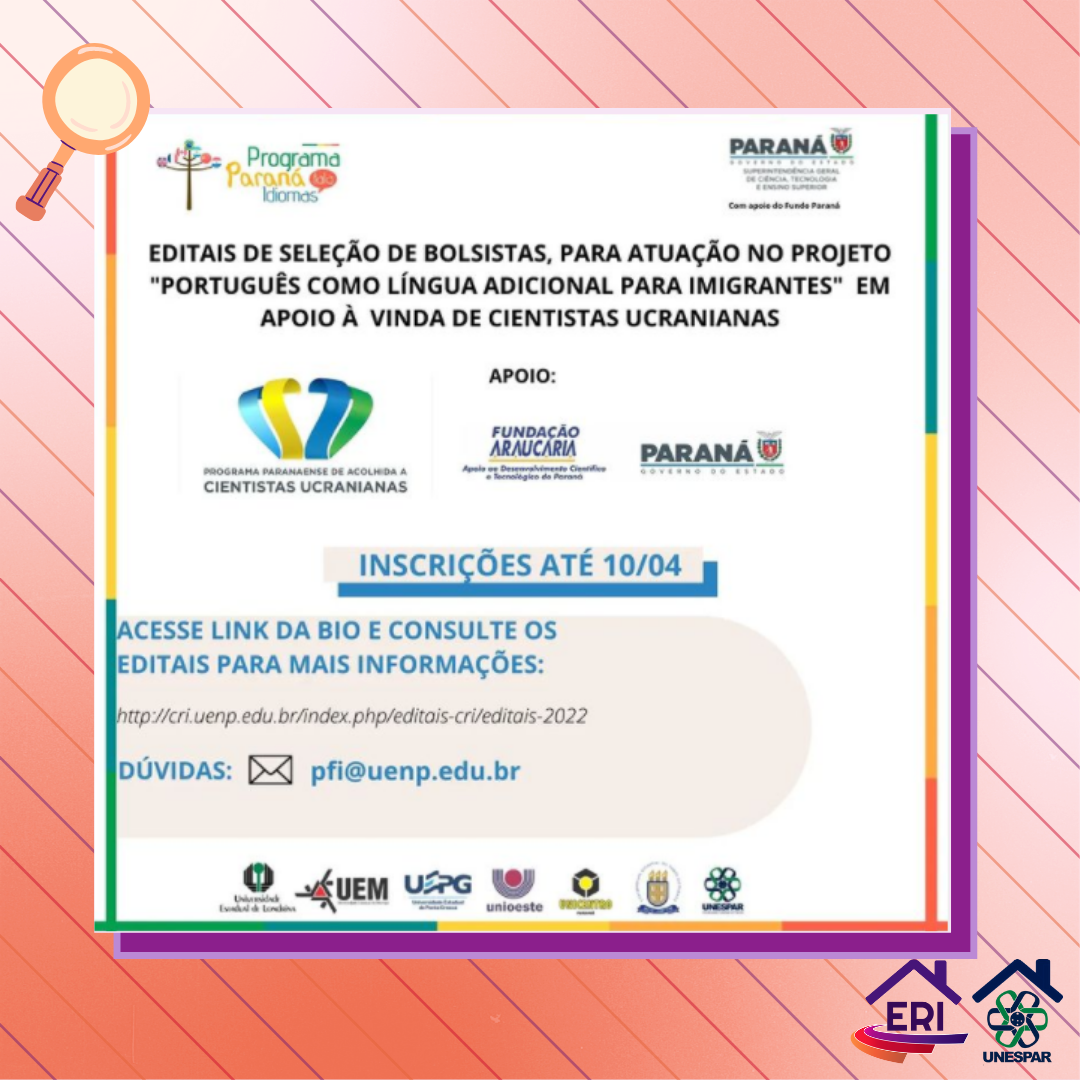 Edital de seleção para atuação no Projeto “Português como Língua Adicional", em apoio à vinda de cientistas ucranianas.