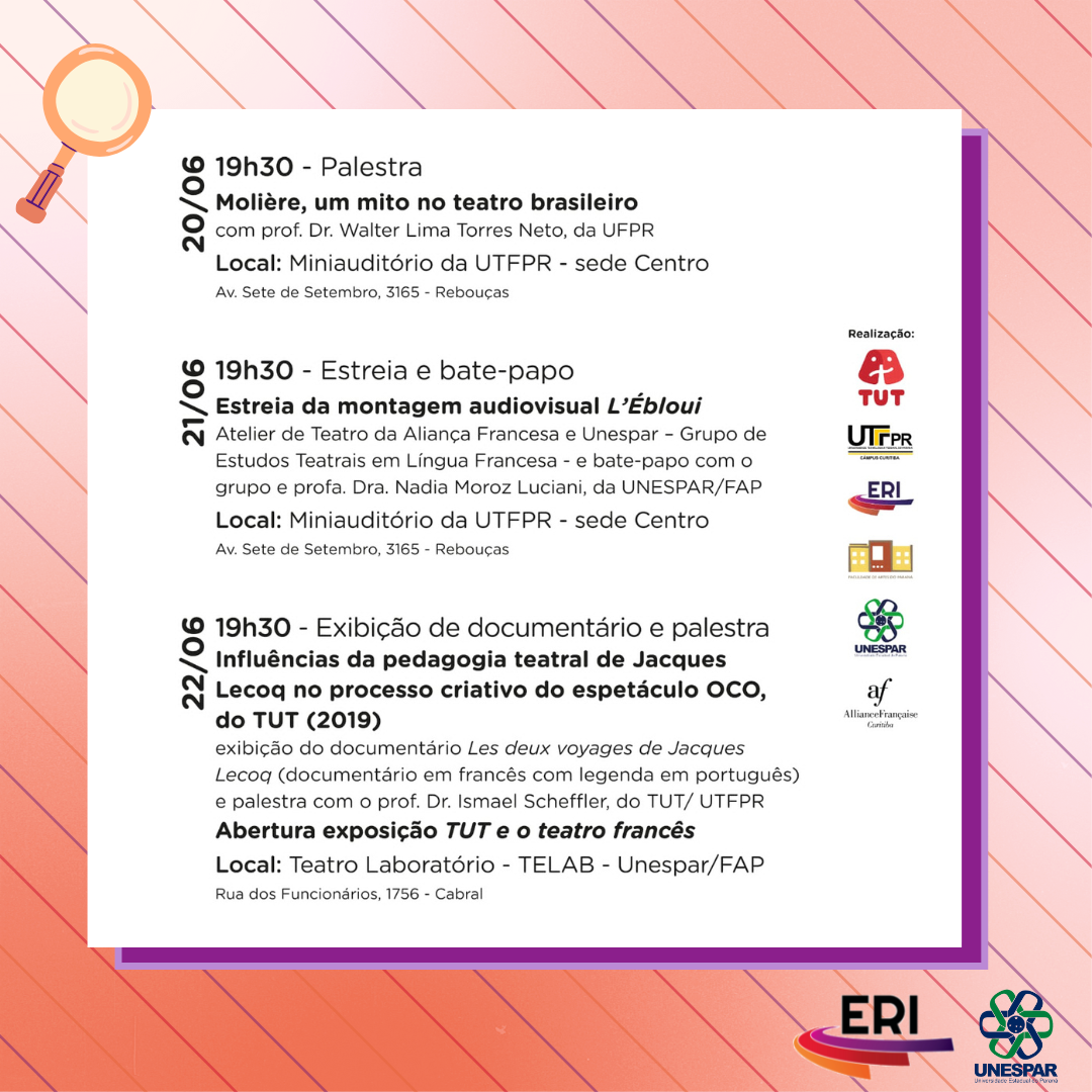 Evento "Influências francesas no teatro universitário de Curitiba" e exposição "TUT e o Teatro Francês"