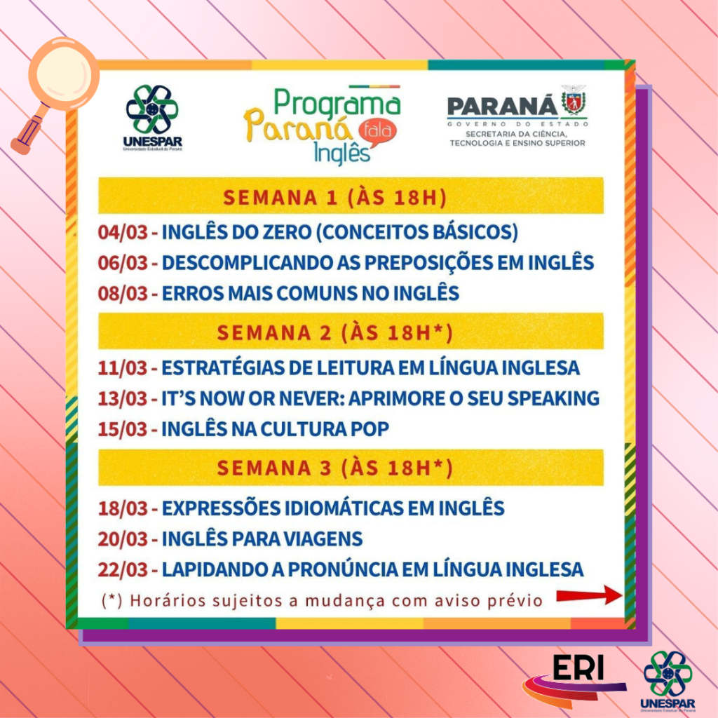 Inscrições abertas para masterclasses ofertadas pelo Paraná Fala Inglês da Unespar no mês de março