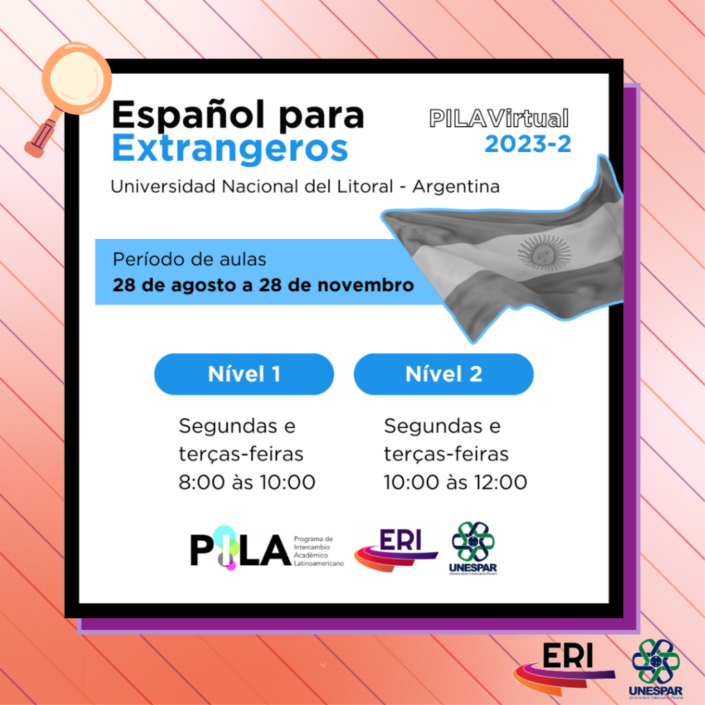Matéria de espanhol para estrangeiros ofertada por meio do PILA Virtual (2023-2)