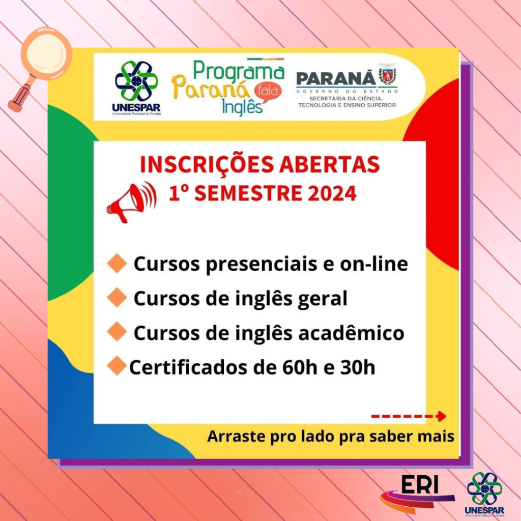 Inscrições abertas para turmas do 1º semestre de 2024 do Programa Paraná Fala Inglês (PFI) da Unespar
