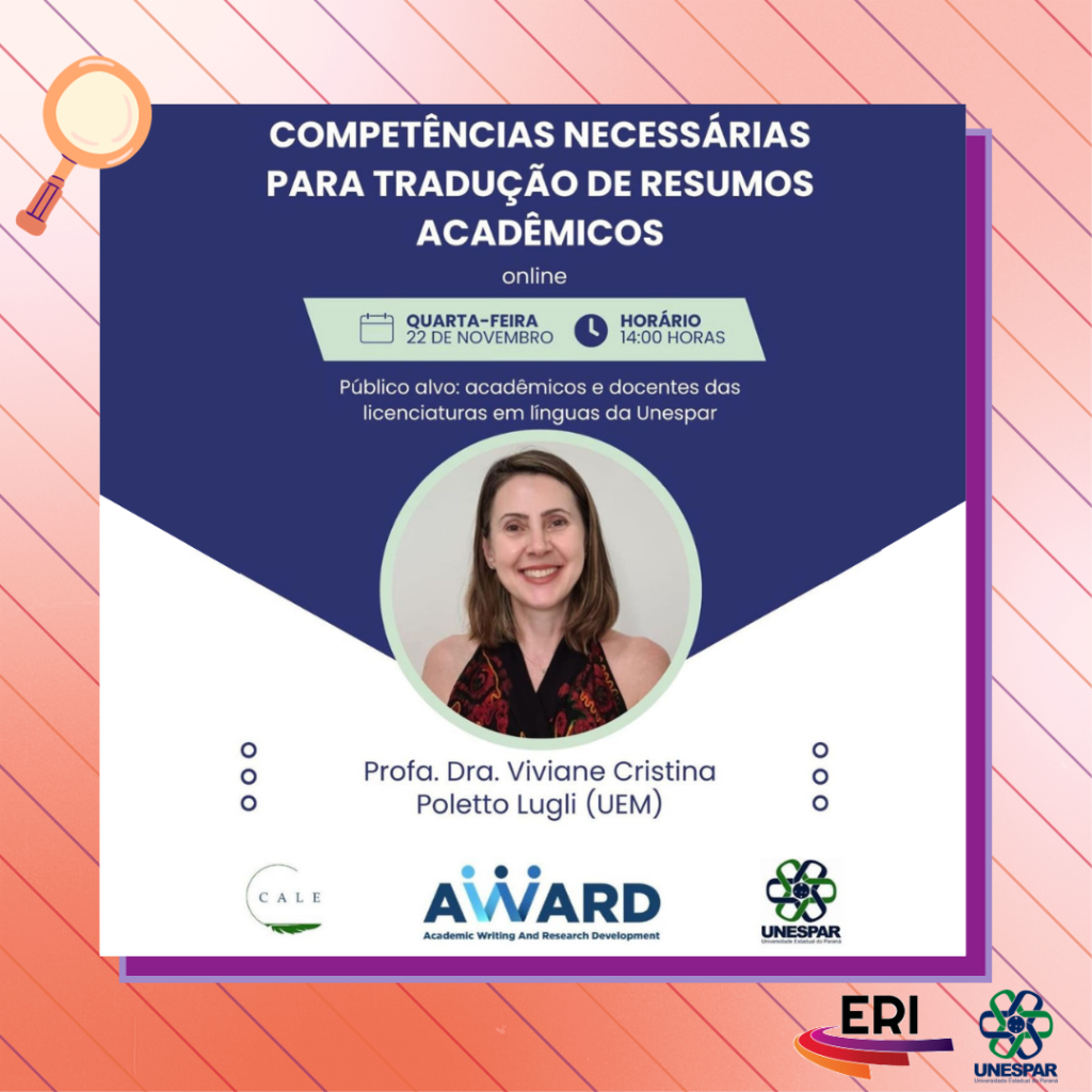 Palestra online Competências necessárias para a tradução de resumos acadêmicos ocorrerá em 22 de novembro.png