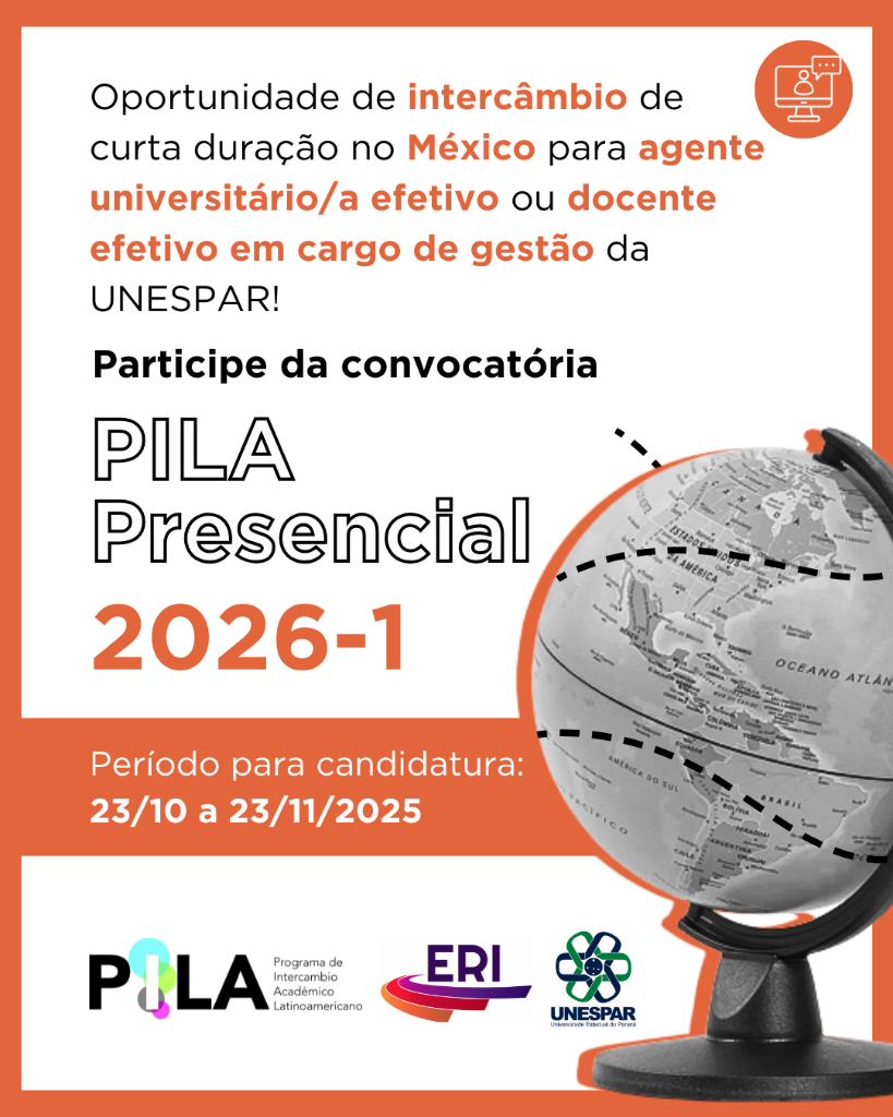 PILA Presencial 2026-1: Oportunidade de intercâmbio no México para agentes universitários e docentes em cargo de gestão do quadro efetivo da Unespar