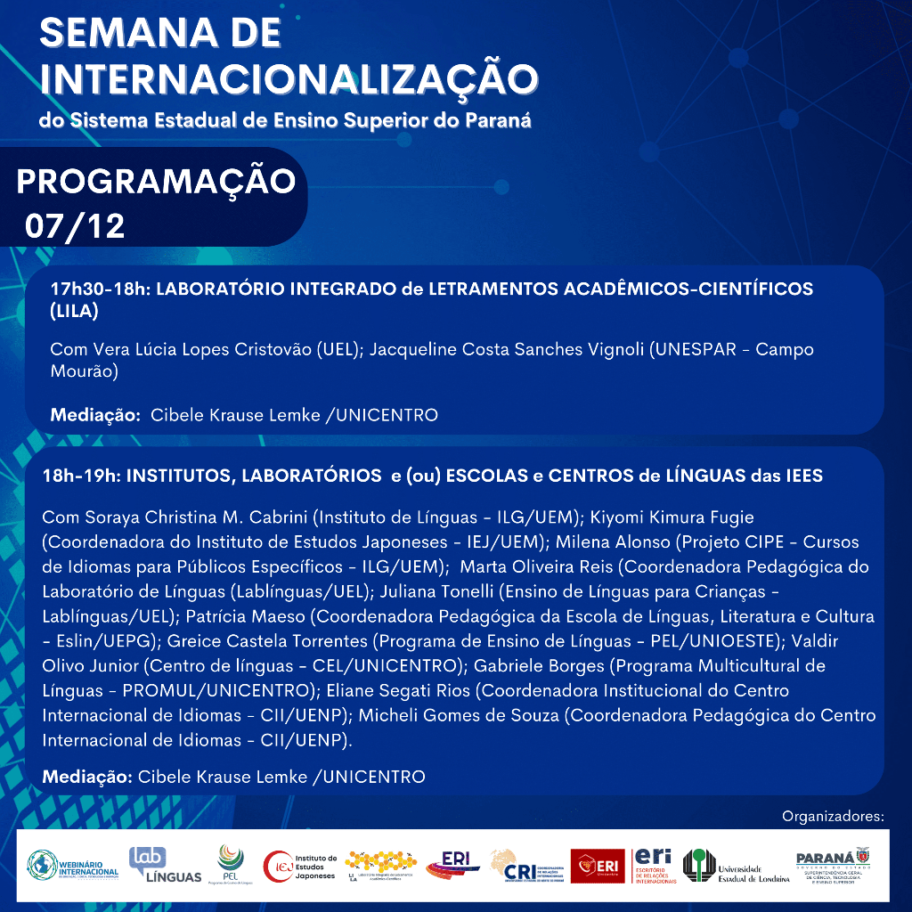 Programação da tarde do 2º dia da Semana de Internacionalização do Sistema Estadual de Ensino Superior do Paraná