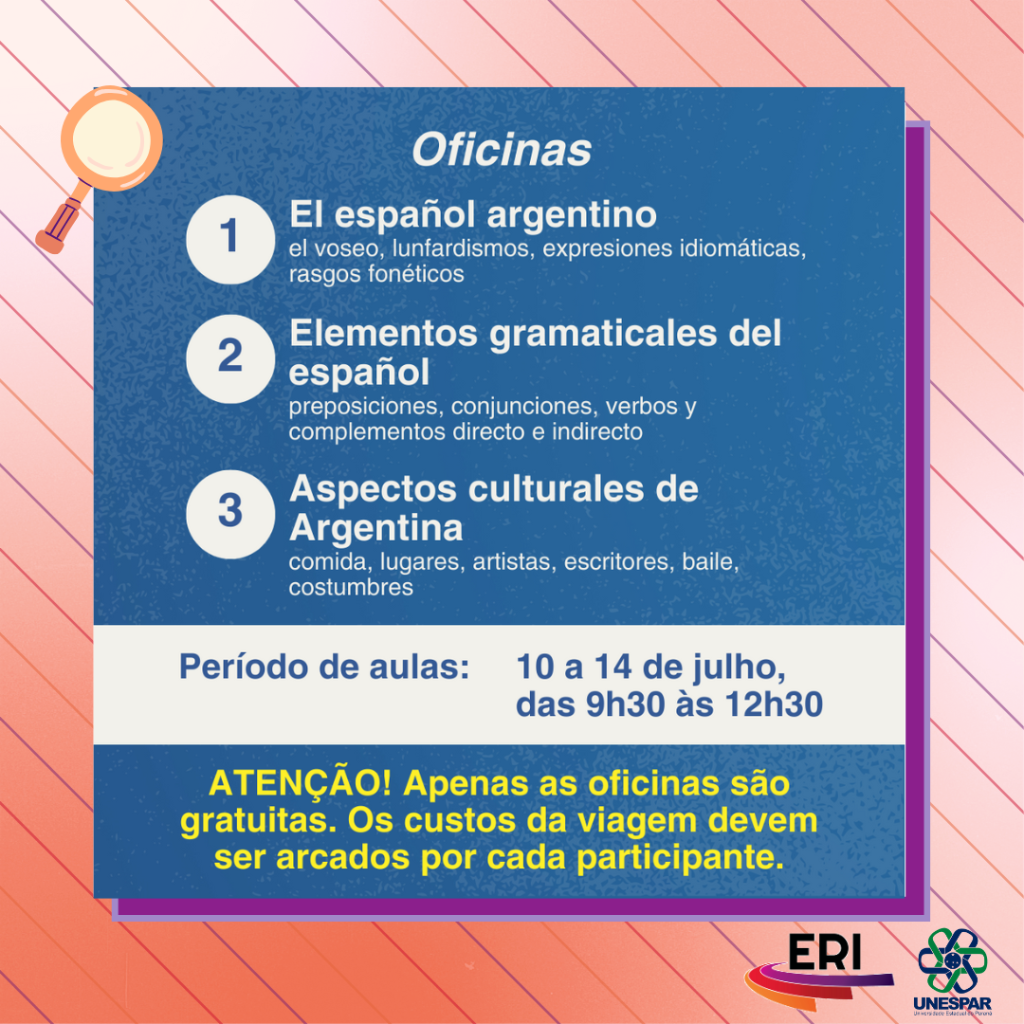 Vagas para oficinas de língua espanhola ofertadas pela Universidad Nacional de Córdoba (Argentina) em julho de 2023