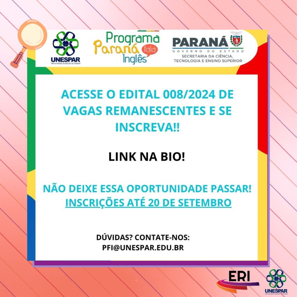 Vagas remanescentes nos cursos do Programa Paraná Fala Inglês (PFI)