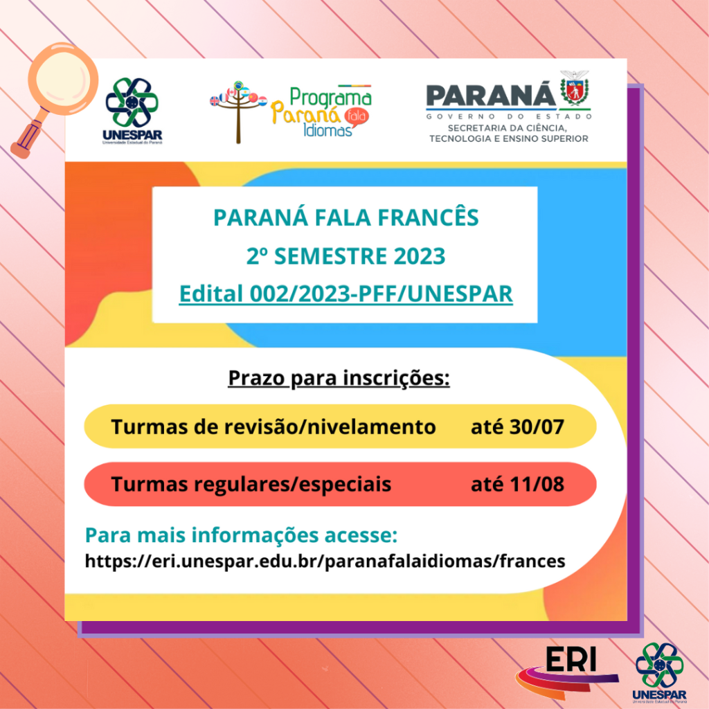 Estão abertas as inscrições para o segundo semestre de 2023 do PFF - UNESPAR