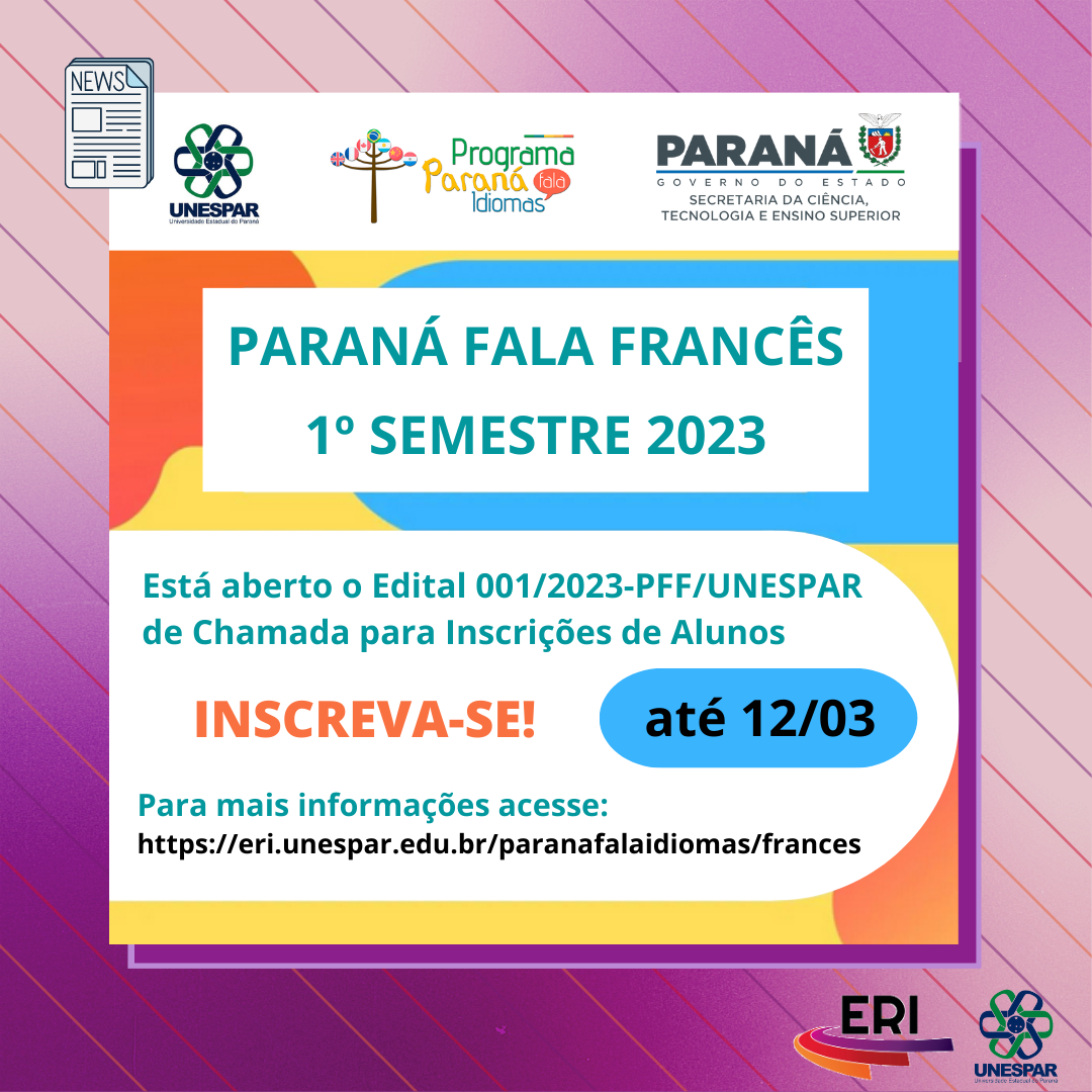 Estão abertas as inscrições para o primeiro semestre de 2023 do PFF - UNESPAR